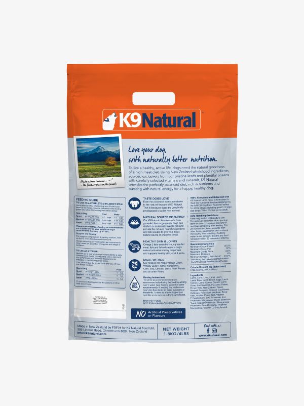 Lamb, Lamb Blood, Lamb Tripe, Eggs, Lamb Liver, Lamb Heart, Lamb Bone, Sunflower Oil, Brown Kelp, Flaxseed Flakes, Lamb Kidney, Cabbage, Broccoli, Swiss Chard, Carrot, Cauliflower, Dried Kelp, Calcium Carbonate, Apple, Pear, New Zealand Green Mussel, Beta-Carotene, Vitamin D3 Supplement, Vitamin E Supplement, Zinc Proteinate, Iron Proteinate, Copper Proteinate, Manganese Proteinate, Thiamine Mononitrate, Folic Acid, Selenium Yeast