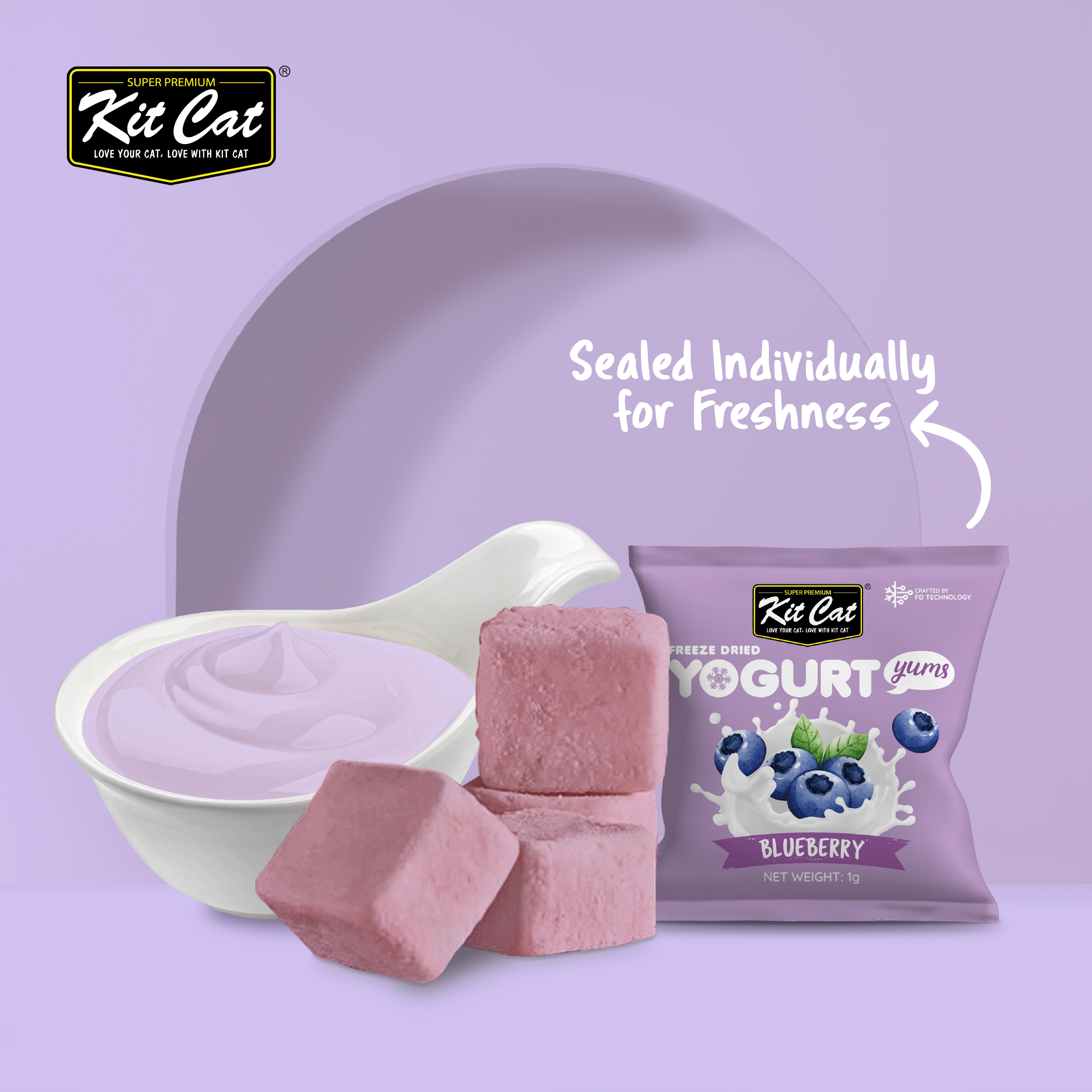 Homepage Products Kit Cat Freeze Dried Yogurt Yums Cat Treat – Blueberry 10pcs