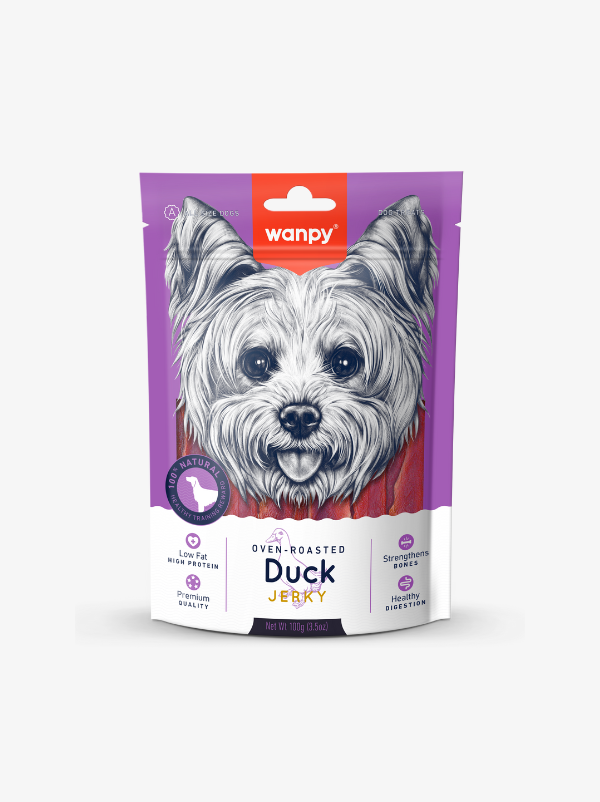 Homepage Products Wanpy Oven-Roasted Duck Jerky Dog Treats 100g